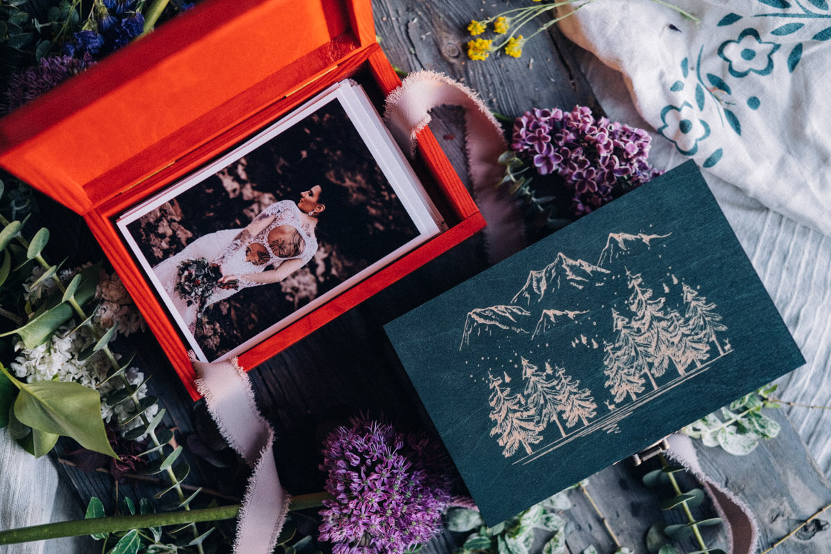 Wooden slide photo box 15x23cm with a boho filling + USB space