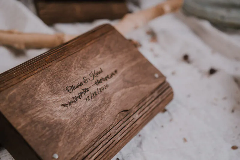 The price includes: a wooden box for photos and a laser engraving on the lid.